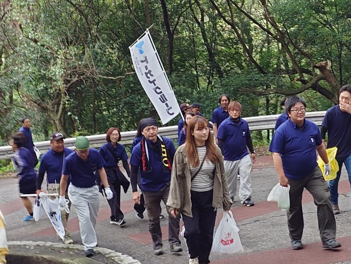 秋を感じる小春日和の中、早朝より集合し、各社各担当コースに分かれ山道を登りながら、清掃を行いました。