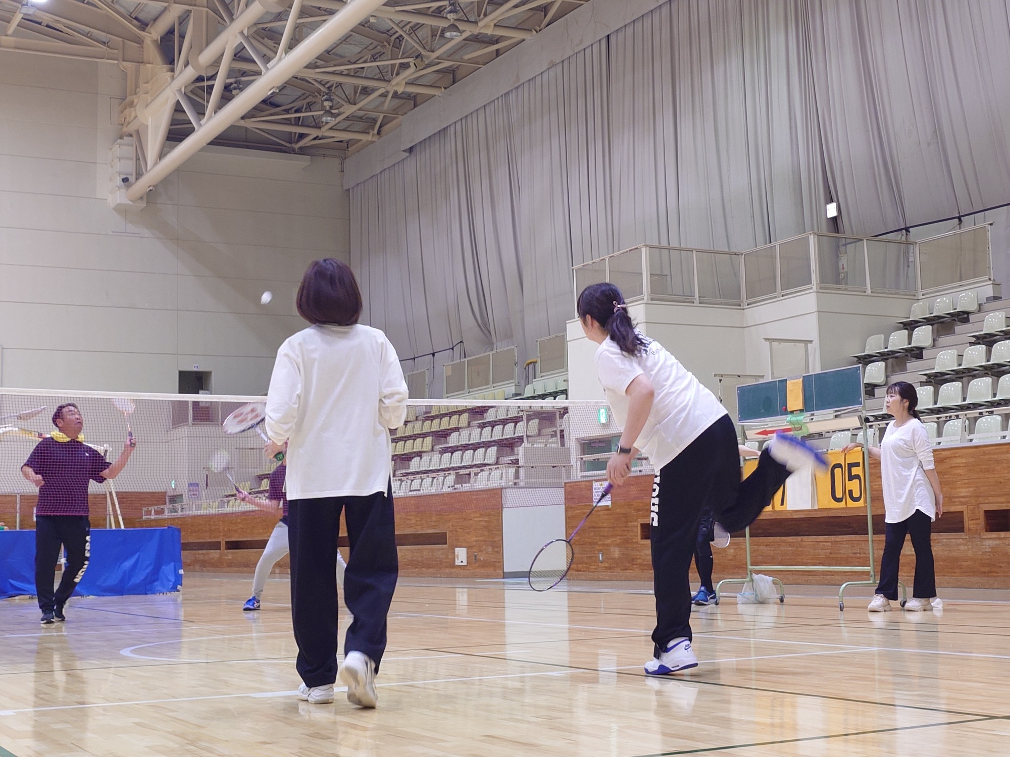 大会当日、接戦でなかなか勝負が決まらないチームがあれば、秒で終わるチームもありましたが、皆、笑顔で楽しくケガもなく、バドミントン大会を楽しむことが出来ました。翌日以降、内ももに痛みが出た人が大半とか…軽めの運動って大切ですね。