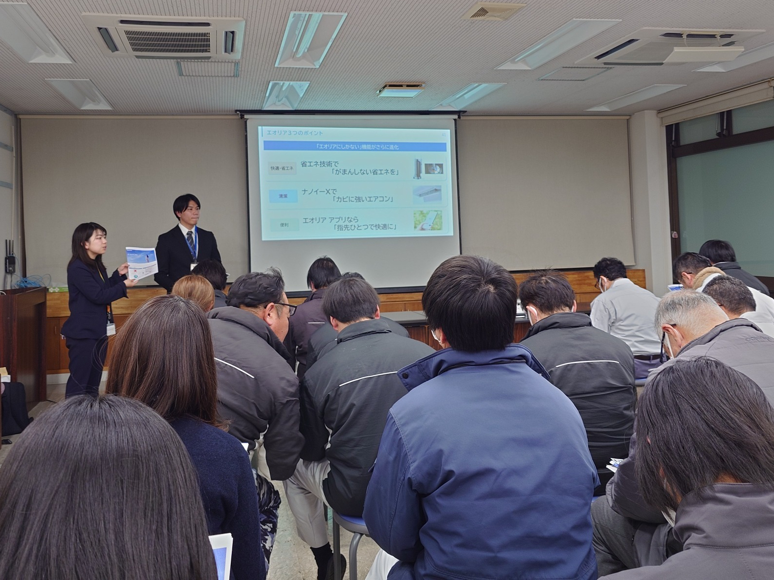パナソニック株式会社様にお越しいただき、ルームエアコン2027年問題についての研修会を行って頂きました。