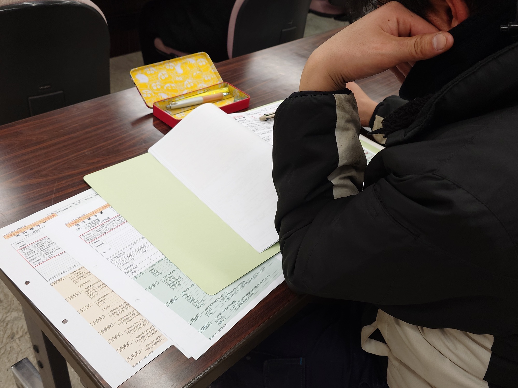 新書式になり、新たに増えた項目や変更点など、まだ書類の書き方に悩む社員の方々へ、講習会が行われました。